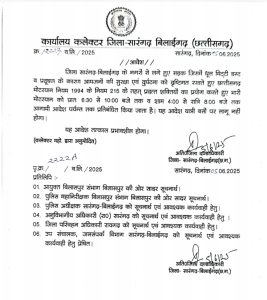 *कलेक्टर कार्यालय सारंगढ़ बिलाईगढ़ से आदेश जारी*