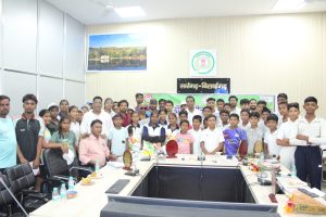 सारंगढ़ बिलाईगढ़, 7 जून 2025/कलेक्टर डॉ संजय कन्नौजे की अध्यक्षता में कलेक्टर सभा कक्ष में जिला स्तरीय ग्रीष्मकालीन खेल प्रशिक्षण शिविर 2025 का समापन किया गया। जिले में इस खेल का शुभारंभ खेलकूद मंत्री टंकराम वर्मा के द्वारा किया गया था। कलेक्टर डॉ कन्नौजे ने कहा कि खेल में अपनी विशेष पहचान बनाकर अपने माता-पिता, गांव शहर, जिले का नाम रोशन कीजिए। समर खेल के अलावा खेल को नियमित खेलते रहें। आप सभी को शुभकामनाएं। इस दौरान अपने अनुभव साझा करते हुए खिलाड़ी बालिका ने कहा कि हम सुबह शाम खेलते थे और दौड़ लगाए हैं। इसी बीच रायपुर भी खेलने गए थे, जहां हम लोगों की जांच भी हुई थी।