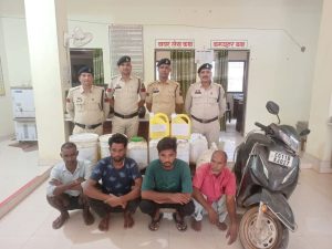 96 लीटर कच्ची महुआ एवं देशी प्लेन शराब एक्टिवा स्कूटी में परिवहन करने वाला आरोपी शराब सहित 04 गिरफ्तार