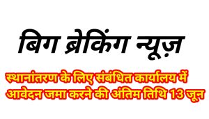 *स्थानांतरण के लिए संबंधित कार्यालय में आवेदन जमा करने की अंतिम तिथि 13 जून*