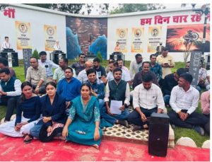 धरने में बैठे पत्रकार