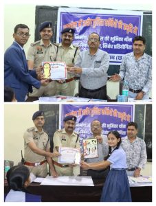 विजेता छात्र–छात्राओं को रक्षित निरीक्षक महेश्वर सिंह, यातायात शाखा प्रभारी उप निरीक्षक अजयकांत तिवारी तथा पी.एम.श्री स्वामी आत्मानंद हिंदी माध्यम स्कूल के प्राचार्य आर.पी. सिंह द्वारा मोमेंटो एवं प्रमाण पत्र प्रदान कर उत्साह वर्धन किया गया।