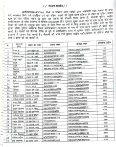 Uncategorized 500 रु में दोपहिया एवं 8200 रु में चार पहिया वाहनों की खुली बोली नीलामी प्रक्रिया का आयोजन March 16, 2025 पुरुषोत्तम लाल हिरवानी CG PUBLIC TIMES जिला बलौदाबाजार-भाटापारा जिले के विभिन्न थाना चौकी द्वारा आबकारी एक्ट मामले में जप्त बाद राजसात किए गए दोपहिया एवं चार पहिया वाहनों की खुली बोली नीलामी प्रक्रिया का आयोजन संदर्भ। पुरुषोत्तम लाल हिरवानी Post navigation Previous ग्रामों पोंडी में वंदे मातरम् चौक वार्ड 4 में शनिवार साप्ताहिक हनुमान चालीसा का पाठ व राम स्तुति हनुमंत महा आरती का आयोजन किया गयाNext कवर्धा में ठेकेदार की दबंगई: नगर पालिका के कबाड़ पर किया अवैध कब्जा, अधिकारियो की खामोशी पर उठ रहे है सवाल