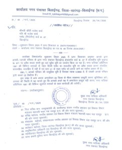 इस संबंध में आप अपना अभ्यावेदन 03 दिवस के भीतर साक्ष्यमय प्रस्तुती करना सुनिश्चित करें। अन्यथा की स्थिति में यह मानते हुए कि आपको अपने पक्ष में अभ्यावेदन प्रस्तुत नही करना, नगर पालिका अधिनियम 1961 की विभिन्न सूसंगत धाराओं के तहत कार्यवाही की जावेगी।